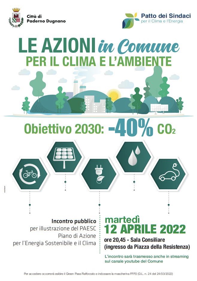 Martedì 12 aprile h 20,45 l’Amministrazione Comunale presenterà ai cittadini il PAESC (Piano per l’Energia Sostenibile e l’Ambiente).